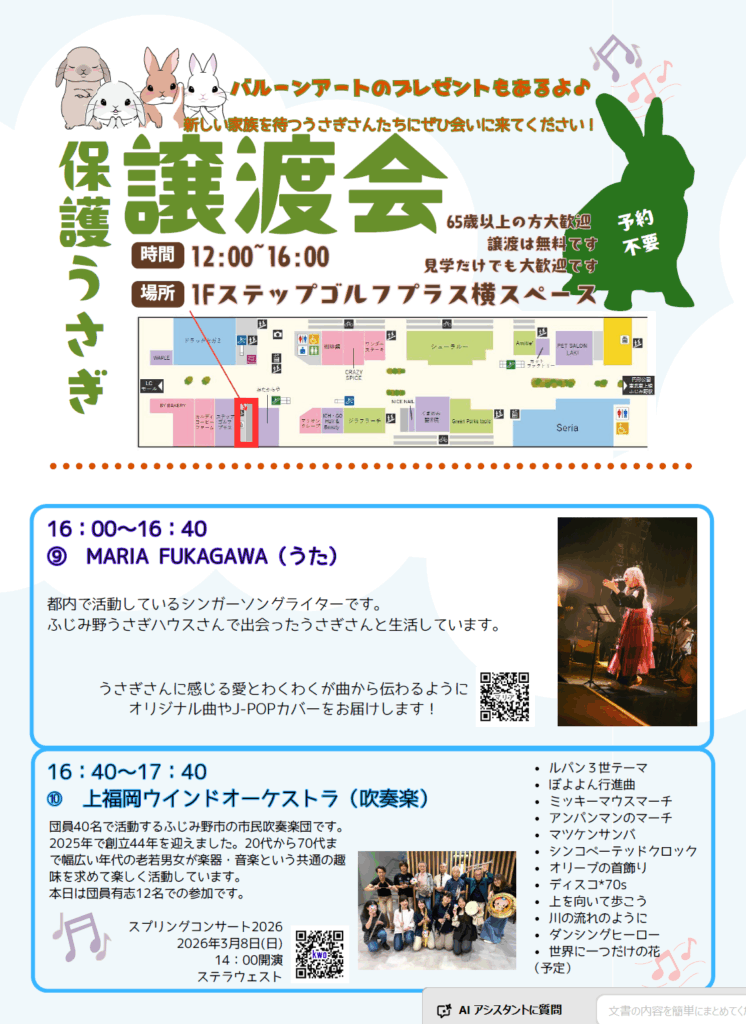 - 主催:ふじみ野うさぎハウス